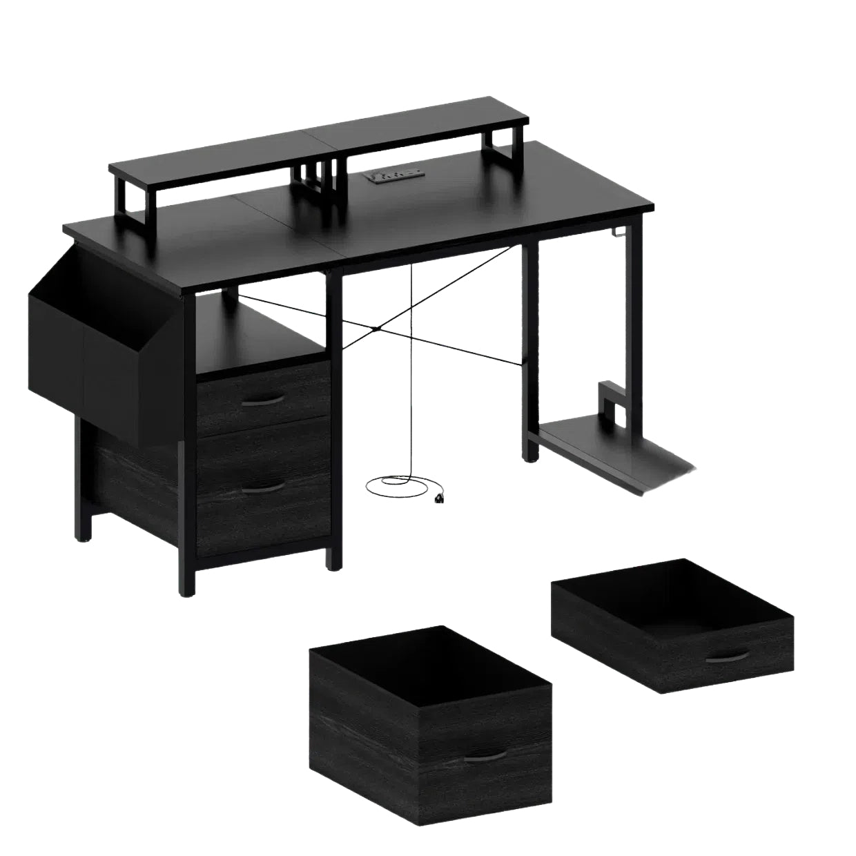 DB 47.3\" Computer Desk with Power Outlet & Drawer Monitor Stands & Shelves Large Office/Writing/Gaming Desk with Side Drawers